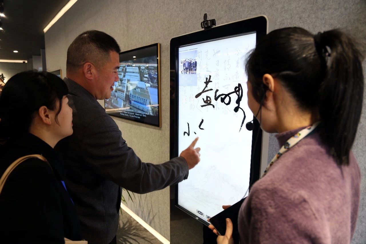 黄向东董事长在智能屏幕上题字